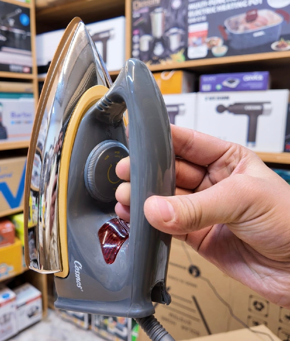 Transform your ironing routine with the Cosmos 400W Electric Iron, designed for modern Pakistani homes. Its powerful 400W motor ensures consistent heat delivery, allowing you to effortlessly smooth out wrinkles and achieve a professional finish in no time.